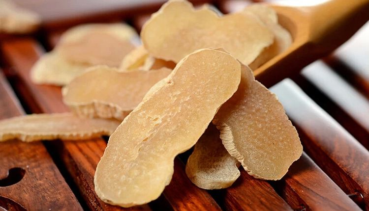 2.蒸制:蒸制的天麻藥用成分損失少,好蒸制,一般一級品蒸制20-30分鐘,二級品蒸制15-20分鐘,三級品蒸制10-15分鐘,四級品蒸制10分鐘,蒸制好的天麻拿起在暗處迎光查看,可見透明的天麻中間略暗影,掰開天麻檢查,可見中間略有白小,如是加工作為禮品或供出口的透明的“雪天麻”,還需要在蒸制后及時剝去天麻表面的粗皮。
